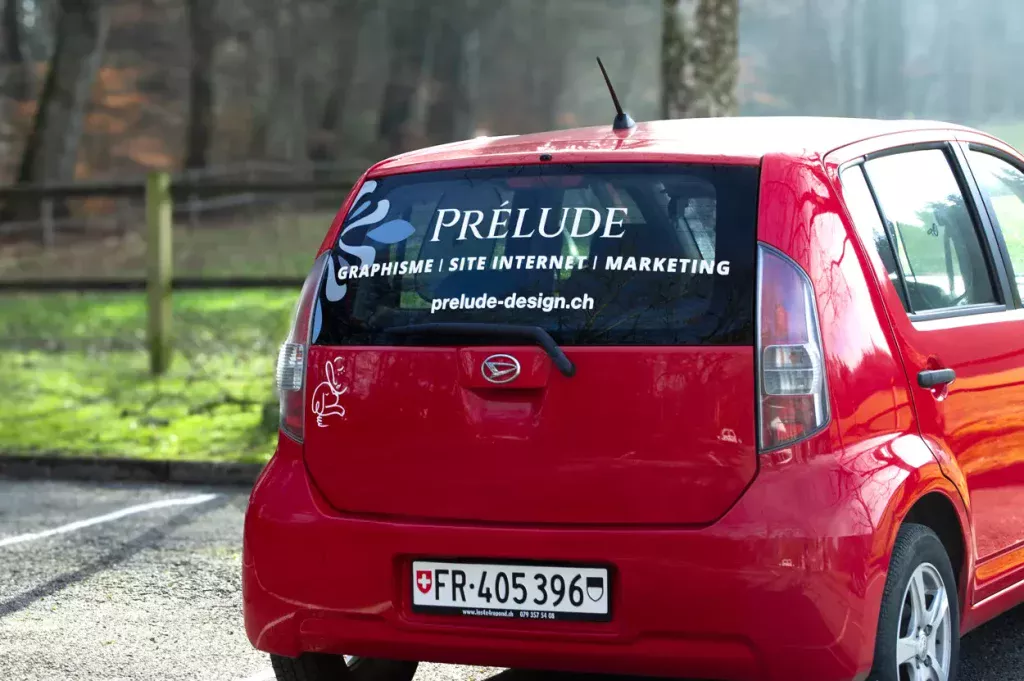 La hiérarchisation du contenu est essentielle pour garder un message clair et efficace : le titre « Prélude » en haut pour marquer l’impact visuel, suivi des informations pertinentes (graphisme, site internet, marketing), et le site, discrètement placé en dessous, pour compléter le tout sans nuire à la lisibilité.
