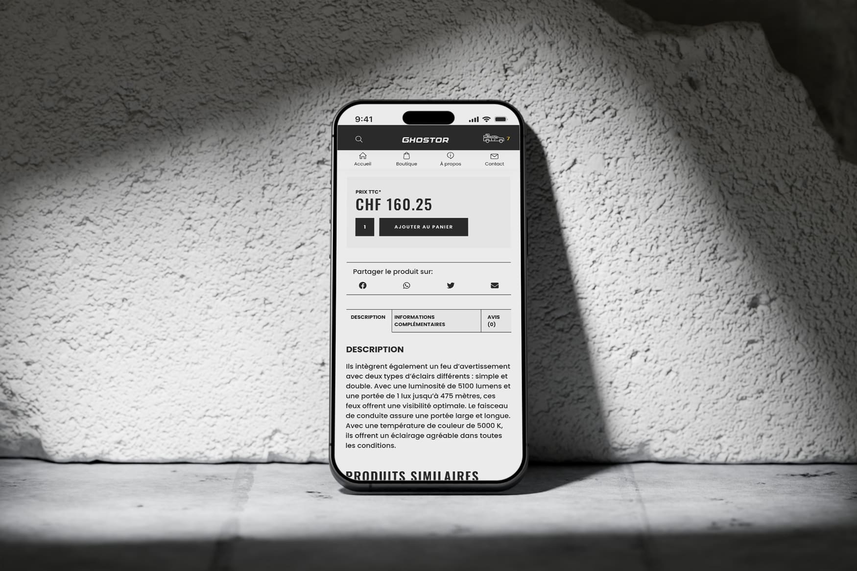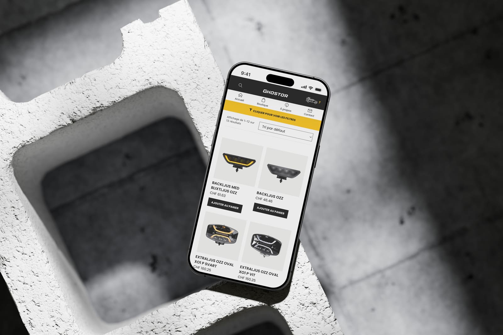 Le site a été conçu pour s’adapter à toutes les tailles d’écrans, garantissant ainsi une expérience optimale sur mobile comme sur ordinateur. Grâce à des filtres intelligents et à une navigation simplifiée, les clients peuvent rapidement filtrer les produits par marque, modèle de véhicule ou catégorie. De plus, Jonathan et Stéphane ont souhaité intégrer des outils SEO pour accroître la visibilité de Ghostor. Ce mélange de technologie, de passion et de savoir-faire mécanique est au cœur de l’identité numérique de Ghostor.