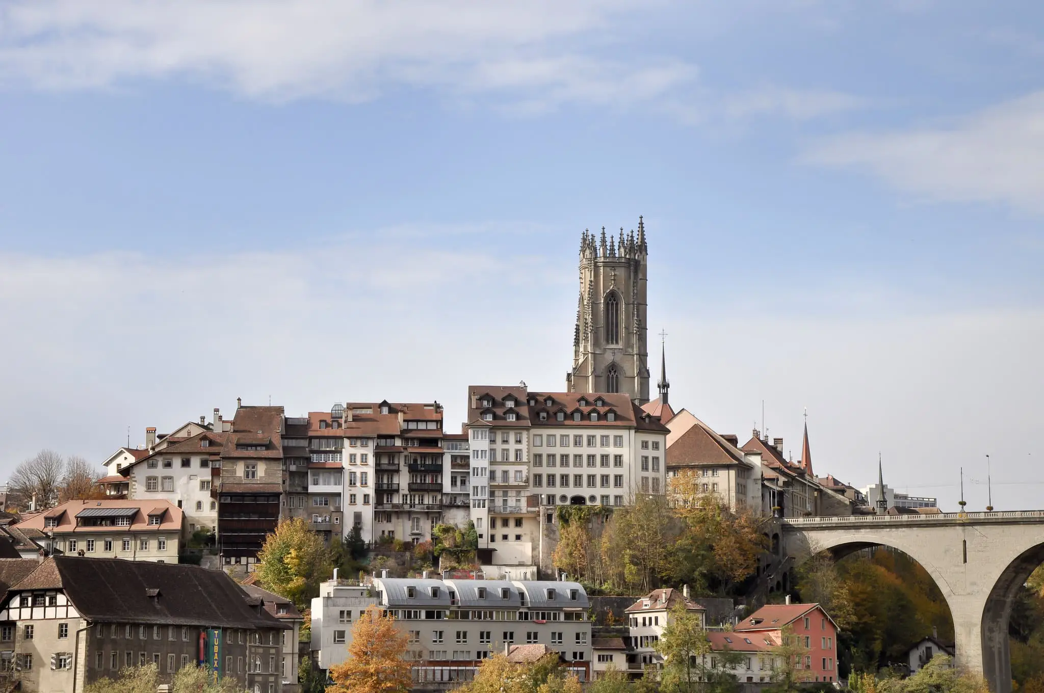 - Incorporation d’arbres et de la Sarine: références à l’engagement environnemental et énergétique de la ville.